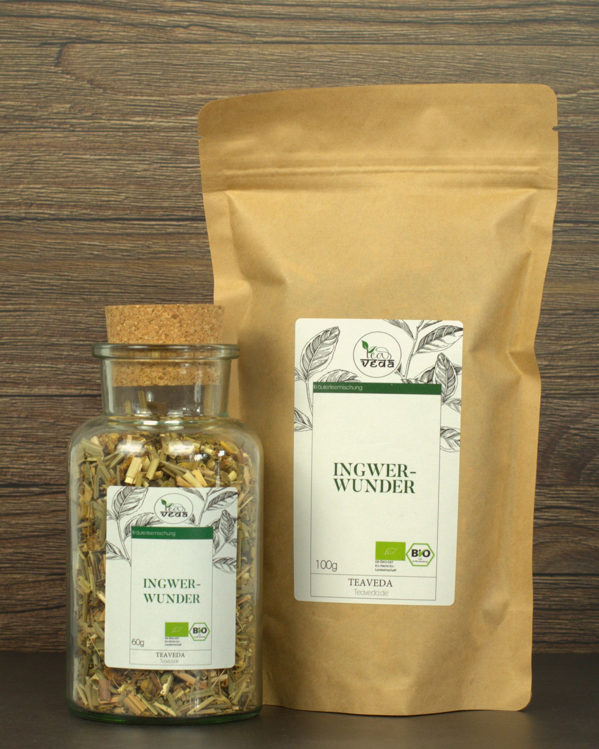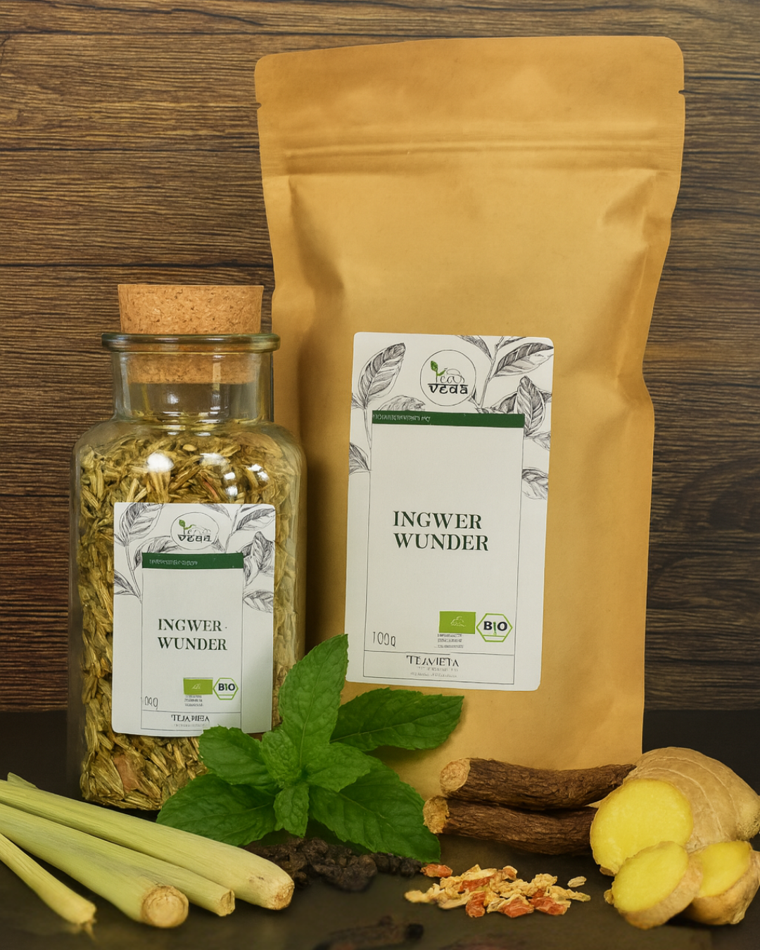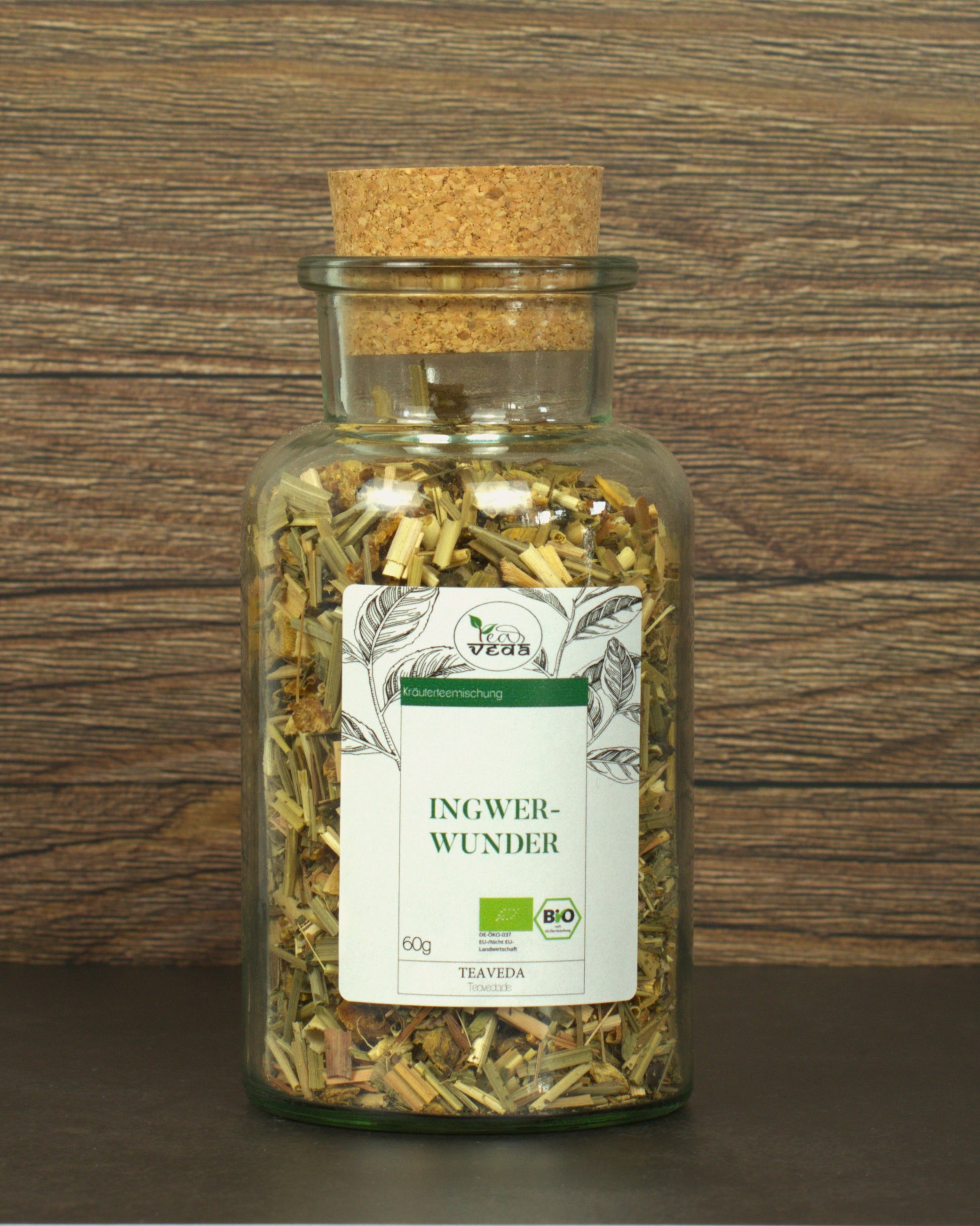 Unser Ingwerwunder Tee ist ein belebender Genuss, der Körper und Geist erfrischt. Hergestellt aus einer ausgewogenen Mischung von Süßholzwurzel, Zitronengras, Pfefferminze, Ingwerstücken und Zitronenschale, bietet dieser Tee eine erfrischende Kombination aus erlesenen Zutaten.
