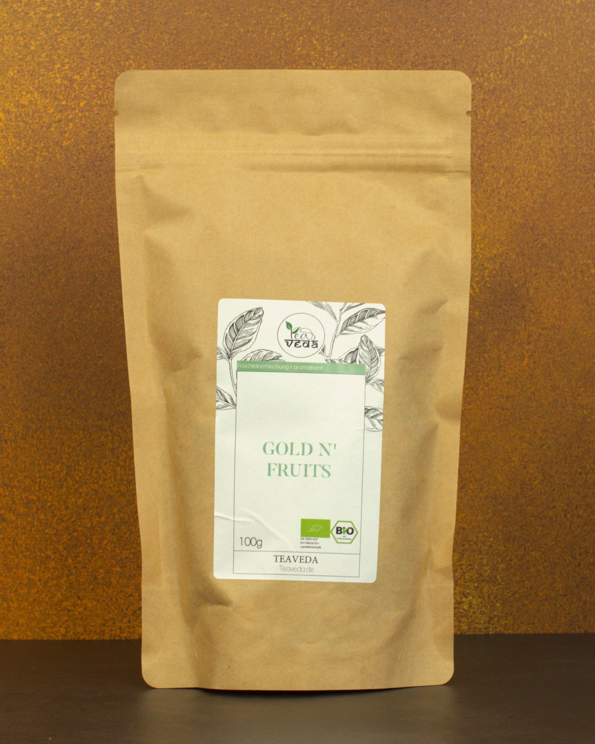 Unser Früchtetee Gold n´ Fruits ist eine faszinierende Mischung, die Körper und Geist in Einklang bringt. Die leuchtend gelbe Farbe und das erdige Aroma des Kurkumas sind perfekt abgestimmt mit der erfrischenden Frische der Orangenschalen und den süßen Apfelstücken.
