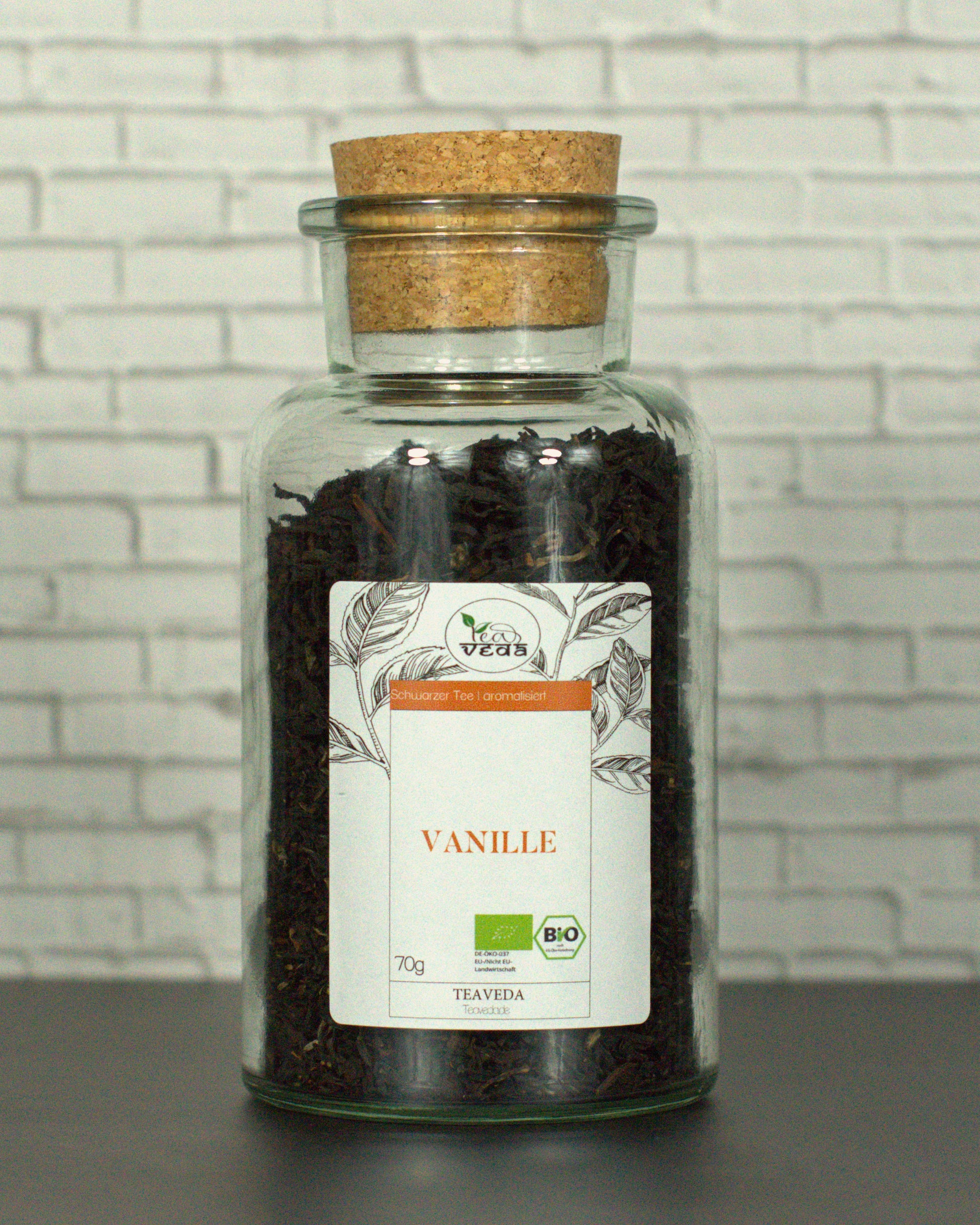 Unser Schwarzer Tee Vanille ist ein hochwertiger, biologischer Schwarztee, der mit natürlichem Vanillearoma verfeinert wurde.
